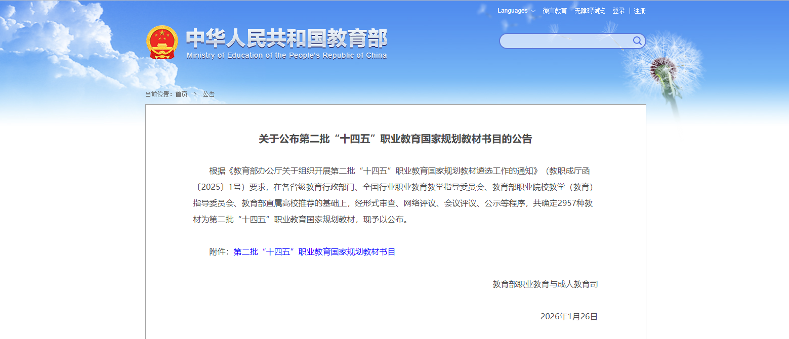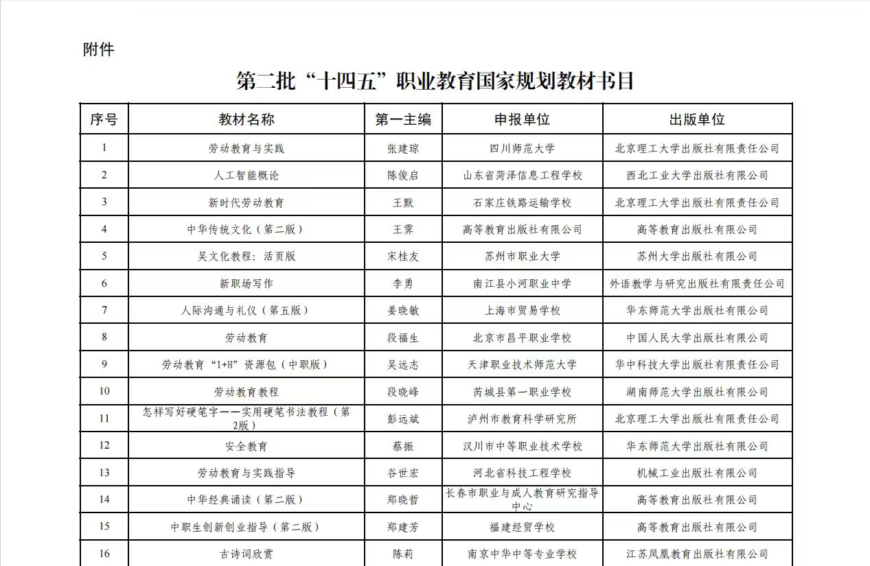 喜报 | 我校杨雷库老师主编教材入选第二批“十四五”职业教育国家规划教材